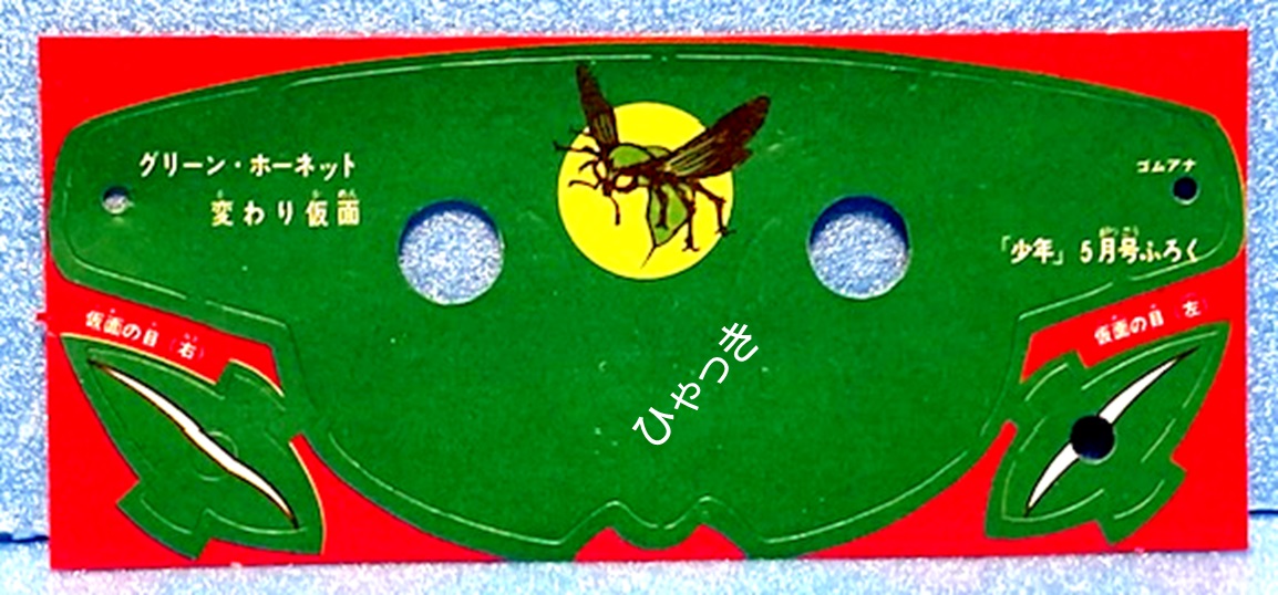 グリーン・ホーネット変わり仮面 ![]() 「グリーン・ホーネット」は仮面をつけたヒーローが活躍するアメリカのテレビ番組。 少年に漫画版が連載されていました。 ![]() |