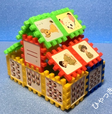 | ジャングル大帝数字ブロック(アート玩具) ブロックを組み合わせていろいろな造形を楽しむ「くみたてあそび」((V)(W)ご参照方)と、(q)〜(t)の数字ブッロックと(u)のプラス、マスナス、イコールのブロックで計算の基礎を学ぶ「すうじあそび」((x)ご参照方)ができる。 アート玩具という会社は今はないようだ。 |