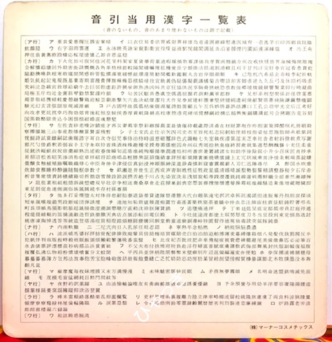 ![]() (f) ![]() (g) ![]() (h) クリームの瓶にはチンクのイラストが描かれている ![]() (i) 裏面は漢字の一覧表。 |