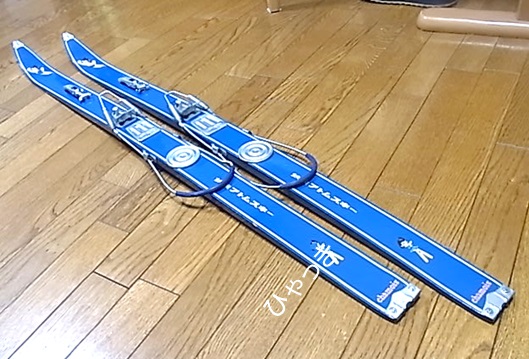 | アトムとウランが描かれた子供用のスキー板。バネでバトンと靴を固定する、だいぶ昔の方式のもの。 季節物で、あまり使用されていなかったらしく、状態は良好。 |