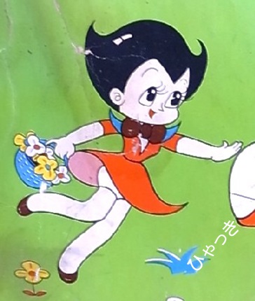 | 「鉄腕アトムロック」は、幼児用のブランコで、安全のために足を前方の2つの孔に挿入して落ちにくくする工夫がなされている。((b)ご参照方) 背もたれのところには、アトムが乗ったブランコを、レオが押している様子が描かれている。ただし、アトムは立ち乗りをしていて、すこし危ない姿勢だが。。 販売していたのは、葛西株式会社(現アップリカ)。虫プロ倒産時、手塚先生を支援された葛西健蔵氏の会社だ。このようなかわいい遊具も販売していた。 |