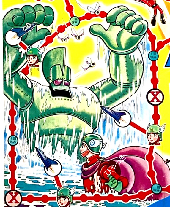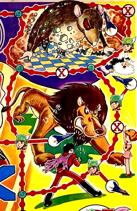 アニメ放映があった1965年くらいに販売されたものだと思いますが、絵はアニメ版のものでなく、原作の作風で描かれています。