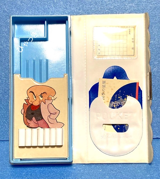 | サファイヤ&ビッグXペンケース この二人の組み合わせが面白い。虫プロ版権シールが残っているのでリボンの騎士が放映されている頃のものか? |